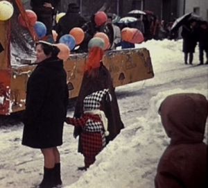 In 1969 was er enorm veel sneeuw gevallen en de straten waren onbegaanbaar. Het was Carnaval en in de hele omgeving werden alle carnavalsoptochten afgelast: onmogelijk en te gevaarlijk werd gezegd. Maar niet in Amby. In overleg tussen de carnavalsvereniging en de gemeente werd een besluit genomen: de optocht op carnavalsmaandag gaat door. De kantonniers hebben de hele morgen de route van de tocht ‘gesleed’ en waar nodig de overtollige sneeuw afgevoerd om de optocht doorgang te laten vinden en de toeschouwers de kans te geven de optocht te bekijken. Hulde aan de kantonniers van Amby. Op deze foto van de optocht is goed te zien hoe hoog de sneeuw aan de kant van de weg nog ligt.