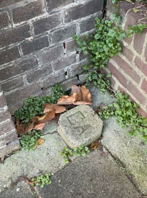 Even terug naar de steen met de letters GA. Deze steen oogt niet zo heel oud, waarschijnlijk is hij uit het midden van de twintigste eeuw. GA kan betrekking hebben op de grondeigenaar maar dat lijkt onwaarschijnlijk omdat de aangrenzende grond nooit in eigendom is geweest van iemand met deze initialen. Waarschijnlijk staat GA voor Gemeente Amby. Gemeenten plaatsten vaker stenen om gemeente-eigendommen mee te markeren. Meestal echter op de grens met een andere gemeente. De gemeente heeft deze steen wellicht geplaatst om de grens aan te geven tussen de straat en privégrond. Zo werd voorkomen dat er stiekem op de straat werd gebouwd, op een punt waar de straat toch al tamelijk smal was. Nogmaals, helemaal zeker weten we het niet, we horen graag andere suggesties!