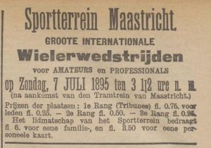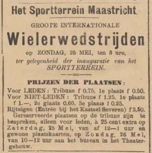 Op zondag 19 mei 1895 zou de officiële opening, de inauguratie, van de wielerbaan plaatsvinden waarbij diverse internationale wielerwedstrijden op het programma stonden. Een tribuneplaats kostte f 1,25 en voor leden van Het Sportterrein f 0,75. Een dag eerder, op zaterdag 18 mei, kopte het Dagblad van Maastricht op haar voorpagina met grote letters dat de wielerwedstrijden waren uitgesteld tot zondag 26 mei. De reden van de uitstelling is auteur onbekend. Daarna werd in meerdere kranten over deze inauguratie dagenlang ruim geadverteerd. Dat de advertenties al die dagen een foutieve datum bevatten (25 mei i.p.v. 26 mei), was voor het bezoekersaantal kennelijk geen punt. De dag na de officiële opening stond er in de krant “Een vrij talrijk publiek woonde de wedstrijden bij, vooral de uitmuntend ingerichte tribune was goed bezet.” Nadat de baan was geopend werden in de dagbladen vaak advertenties geplaatst over de wedstrijden die in Amby plaatsvonden, waarbij de prijzen van de plaatsen een stuk lager lagen dan voorheen: een plaats op de tribune koste f 0,75 i.p.v. f 1,25. De wielerbaan kon je uiteraard lopend bereiken, maar ook met de trein. De trein die in Maastricht vertrok richting Heerlen stopte onderweg in Limmel, Mariënwaard, Vaeshartelt, Rothem, Meerssen en in nog enkele plaatsen richting Heerlen. De wielerwedstrijden in Amby begonnen na aankomst van de trein in Limmel. Jaren later (1924) stopte de trein weliswaar ook in Limmel, echter alleen als iemand dat vooraf vroeg. De halte Limmel lag ongeveer waar sinds 2014 de Balijeweg met een tunnel onder het spoor door gaat.