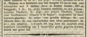 Door de Sociëteit Momus werd op 12 september 1869 de eerste (inter)nationale wielerwedstrijd in Nederland georganiseerd. Onderdeel van de betreffende dag was een speciaal voor jongens tot 15 jaar georganiseerde wedstrijd op driewielers. Het is tegenwoordig ondenkbaar, maar indertijd kennelijk niet: de eerste prijs was een bronzen medaille en een geweer, système Flaubert en de tweede prijs een pistool Flaubert.